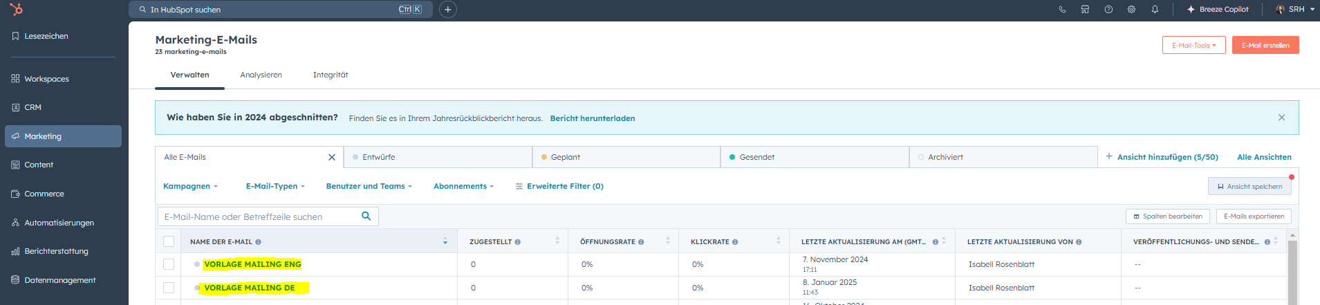 3. Nutze die Vorlage "VORLAGE MAILING DE" für deutsche Mails und für englische Mails "VORLAGE MAILING ENG". siehe Screenshoot.